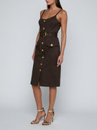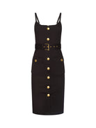 Sharp and impeccably tailored, the Ida dress is all about modern polish. Crafted from stretch cotton, it contours the body with a structured feel while remaining effortless to wear. Gold logo-embossed buttons line the front, adding a striking finish that defines the look.
