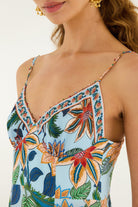 Embrace effortless summer charm with the Light Blue Floral Delhi Sleeveless Maxi Dress from FARM Rio. Its sweet blue hue blossoms with vibrant floral patterns, creating a joyful, sun-kissed vibe. The flattering sweetheart neckline gracefully frames the décolletage, while the flowing maxi silhouette moves with a breezy softness. Perfect for those warm days when comfort meets playful elegance, this dress invites you to celebrate every moment with warmth and ease.