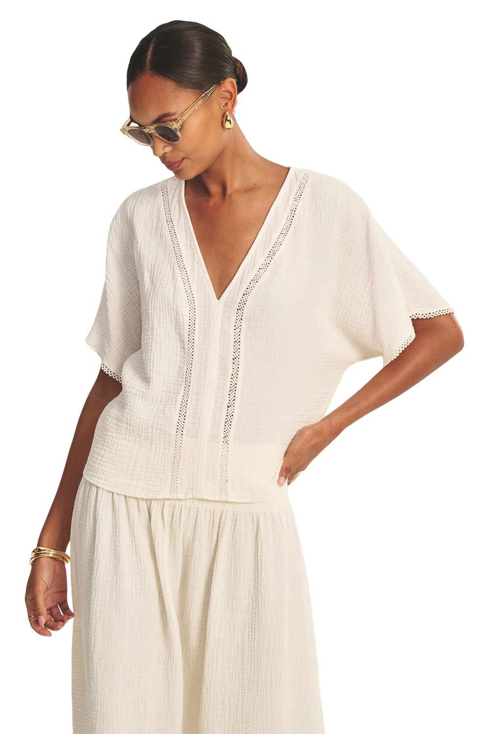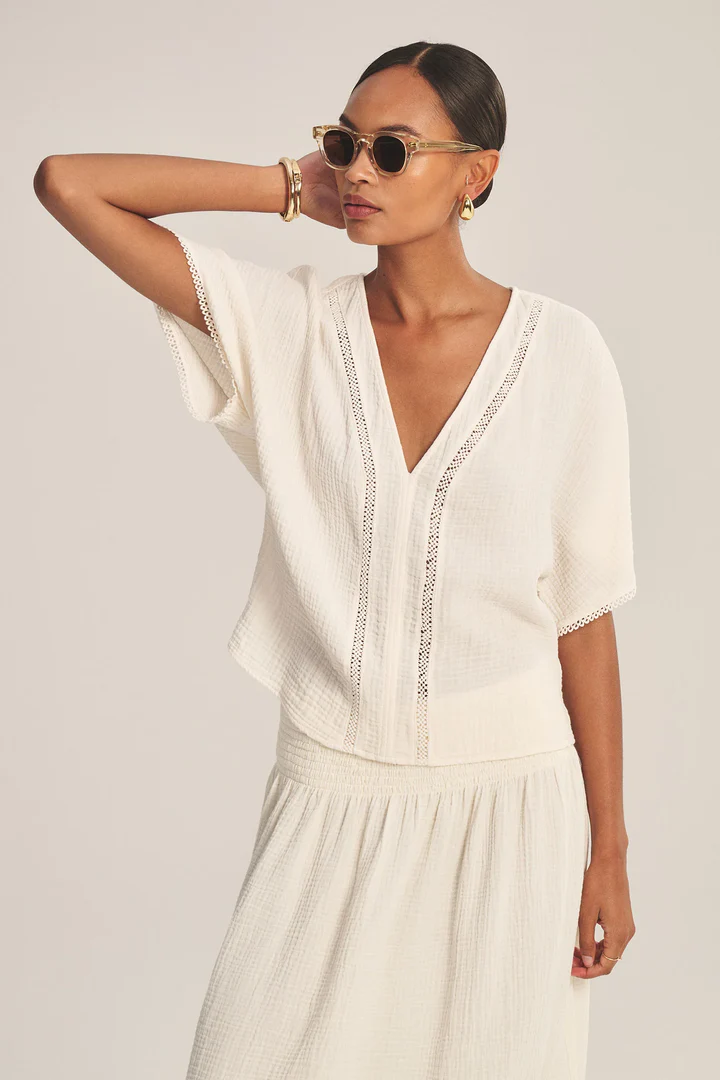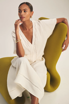 This ethereal cotton gauze blouse embodies understated sophistication with its thoughtfully designed front embellishments that draw the eye and celebrate movement. The airy, lightweight fabric cascades beautifully against your frame, delivering that coveted relaxed-yet-refined aesthetic without sacrificing comfort. Intricate detailing along the front elevates the piece from everyday essential to conversation-starting favorite, while the breathable weave keeps you cool and confident through warm seasons. Whether you're heading to brunch or a special evening, this versatile blouse adapts effortlessly to your style, offering the perfect balance of ease and elegance.