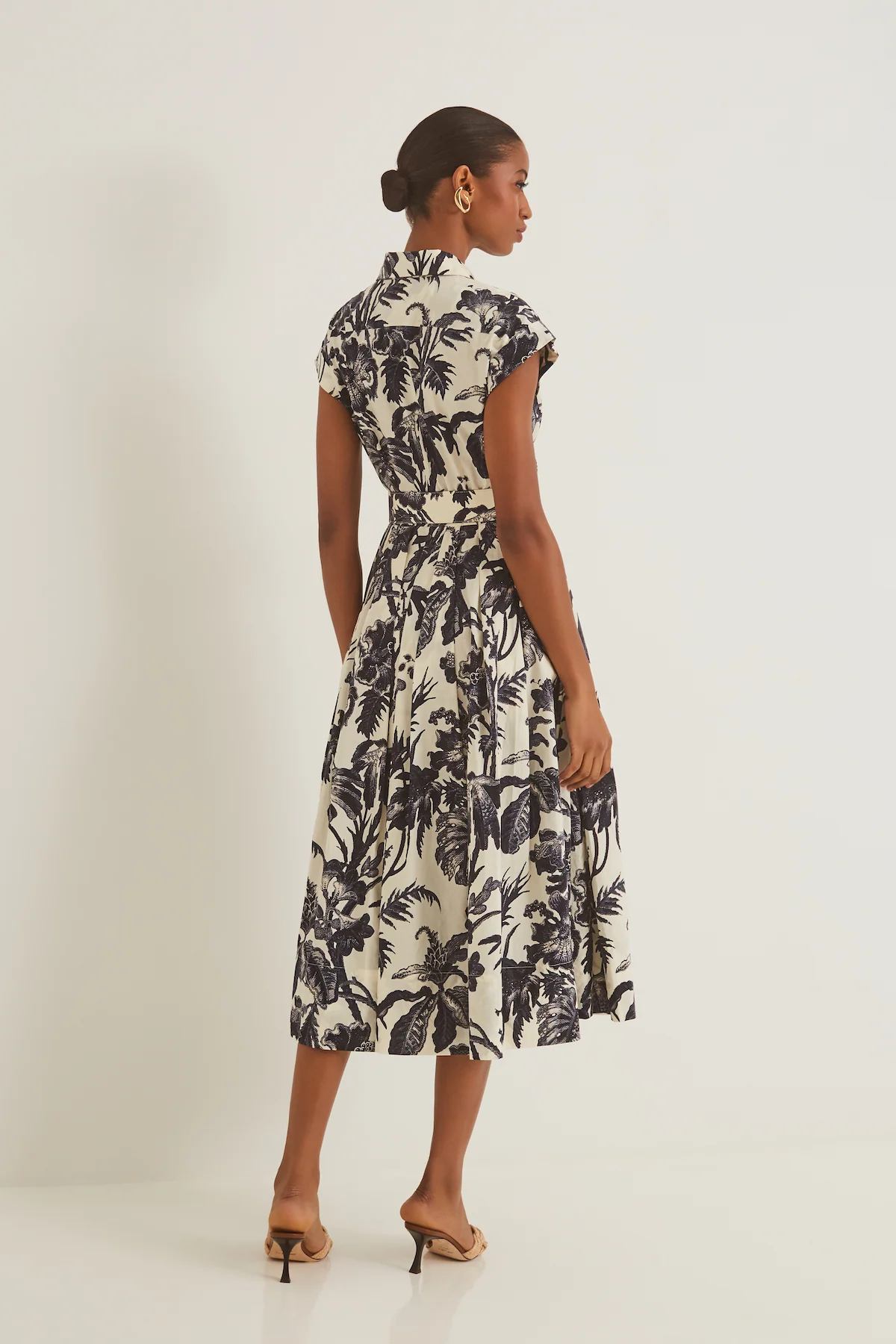 • Drop-shoulder, fit-and-flare, midi, belted shirtdress