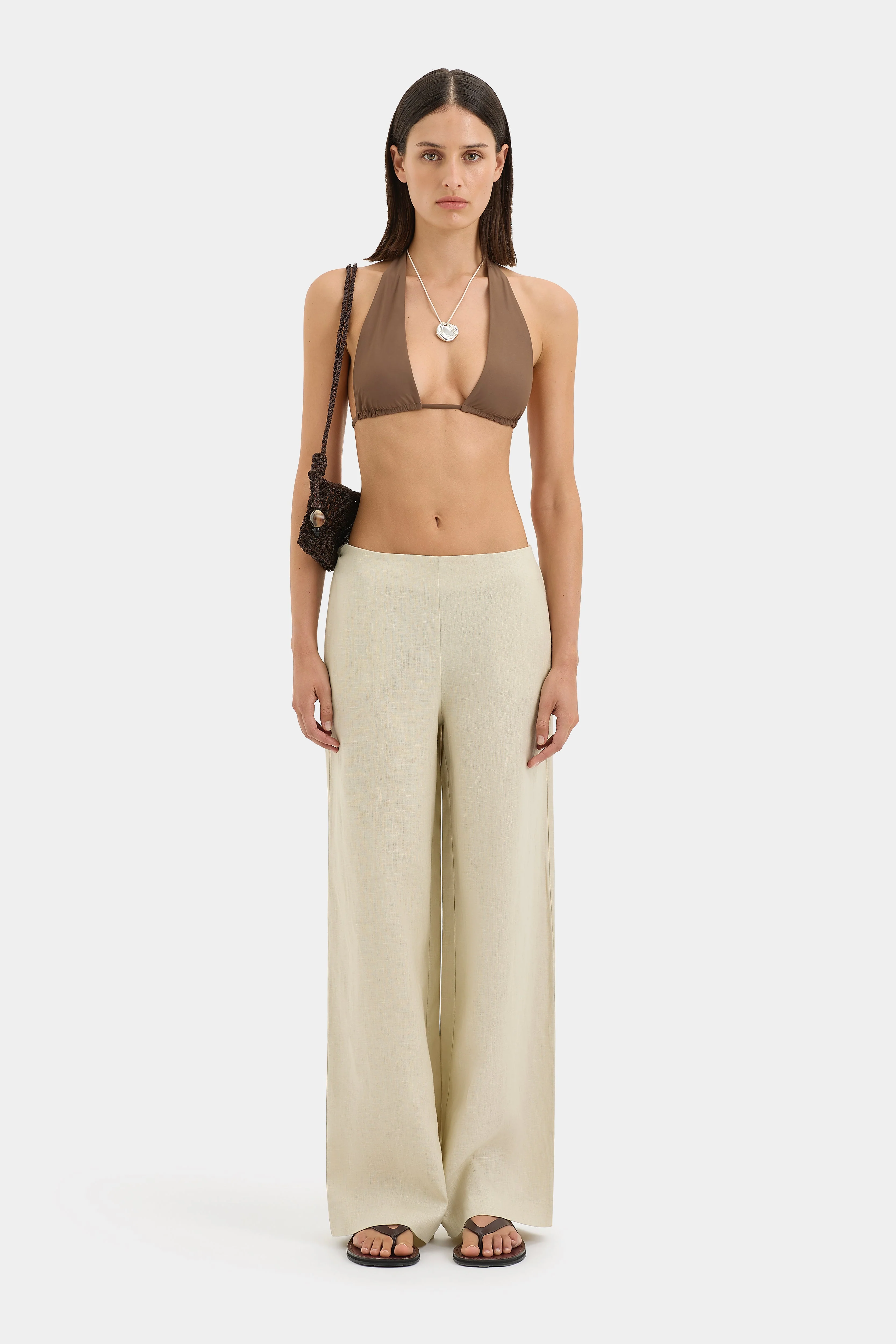 The Raquel Tie Pant in Wheat is crafted from our signature midweight natural linen with a soft and luxurious handfeel. It features a mid-rise waist, wide leg shape and side zip closure with a beaded tie detail.