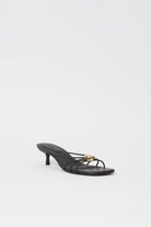 The Amaya Leather Strappy Kitten Heel in Black