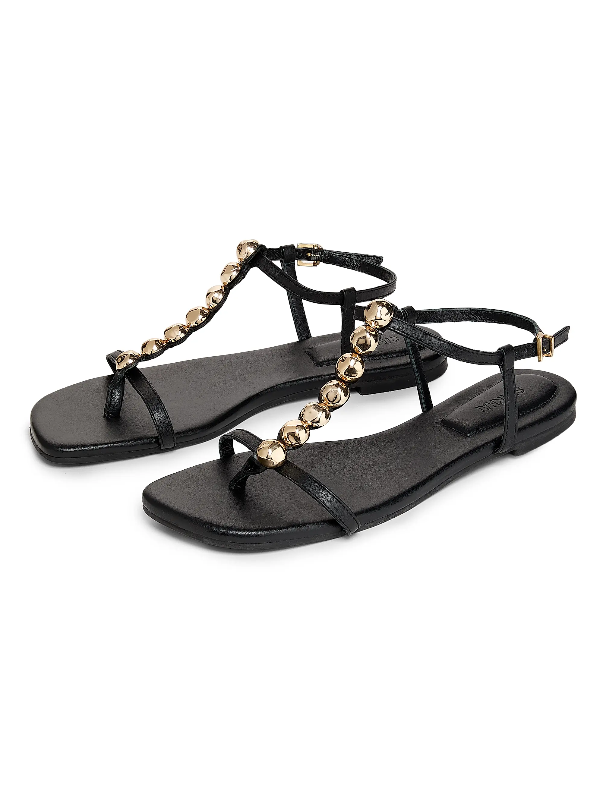 The Amaya Studded Leather Sandals in Black