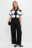 The Callie Soutache Linen Camp Shirt in Black Multi