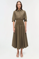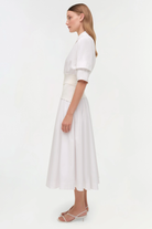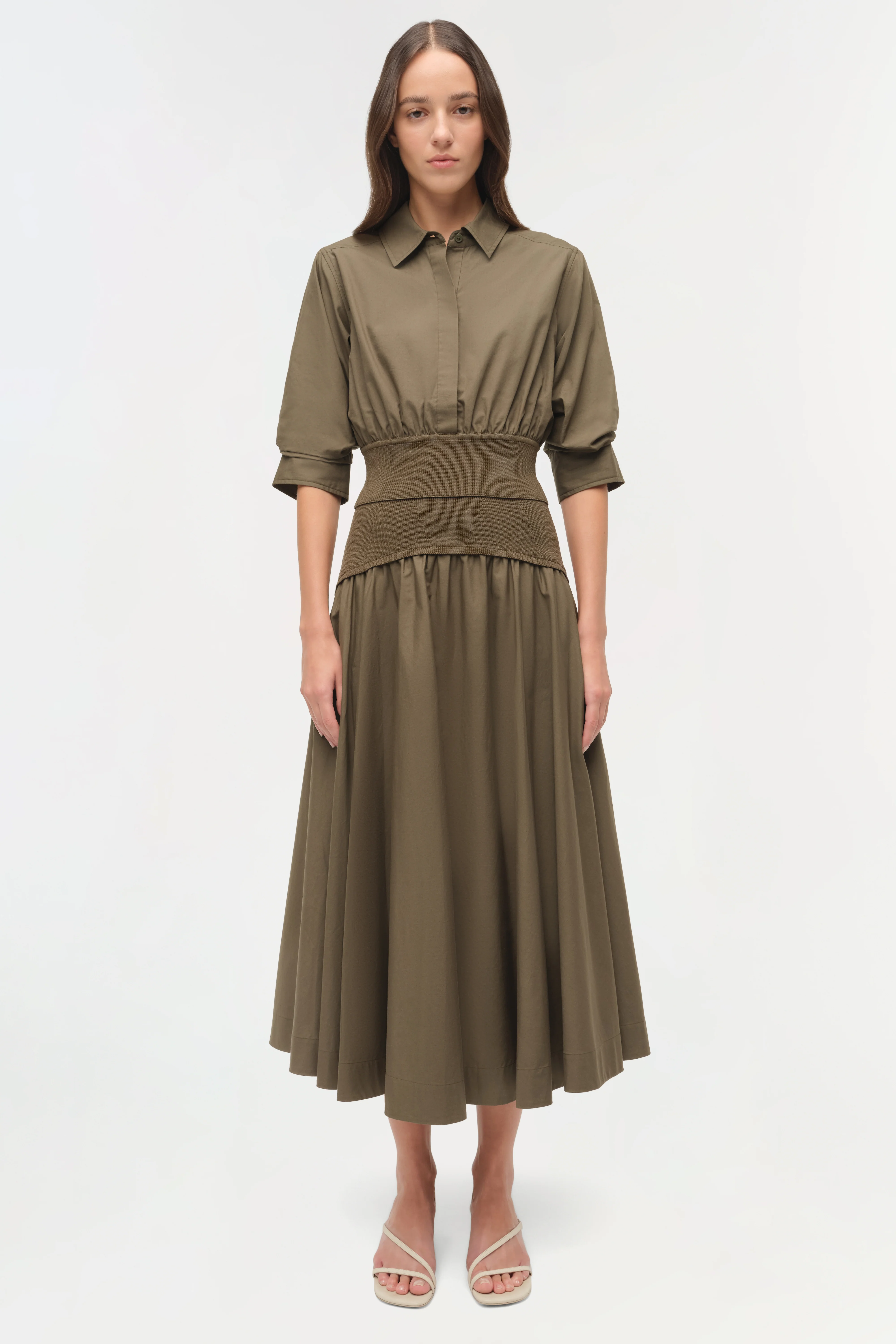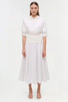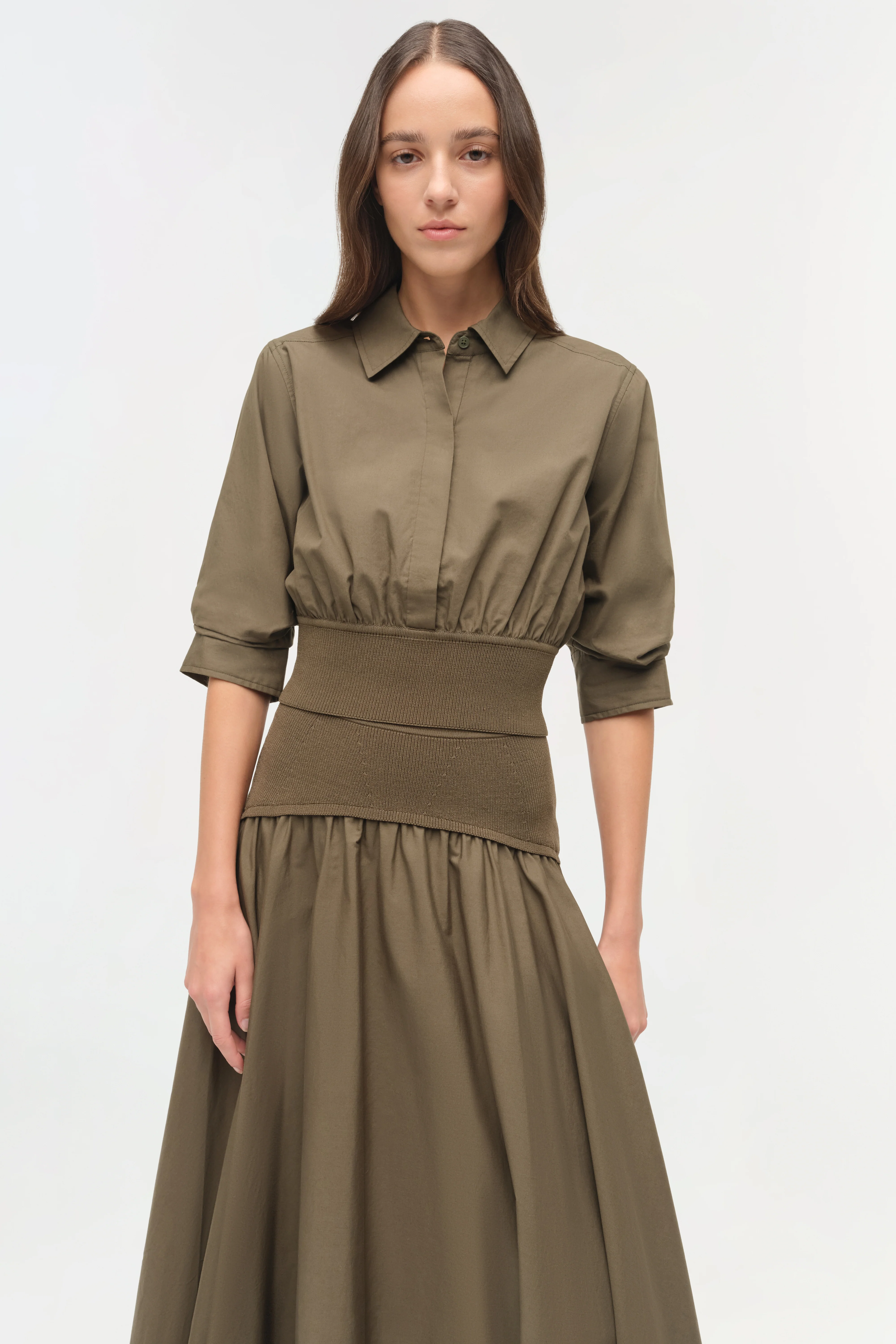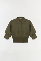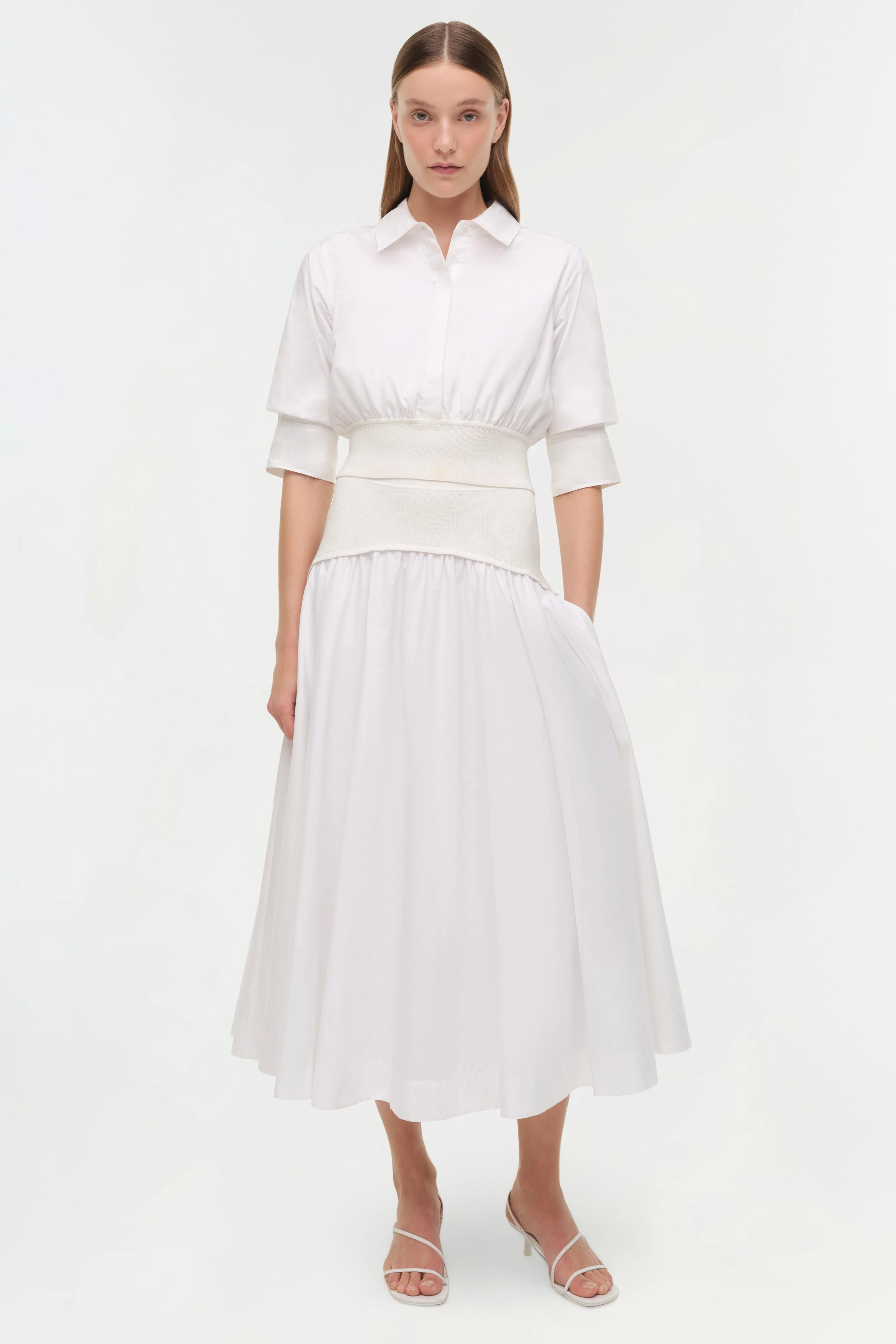 Made in smooth cotton poplin, this shirt top features a ribbed knit waistband that cinches the waist. The collared neckline and cropped proportion balance structure and ease. A modern take on classic shirting. Pair with the Ovie Knit Cotton Midi Skirt for a matching set.